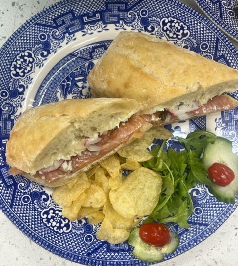 For Lunch, we have open-faced sandwiches that have the freshest ingredients served on homemade bread that will leave your mouth full of flavor. And afterward you can try a tasty treat that is baked with warmth and goodness!